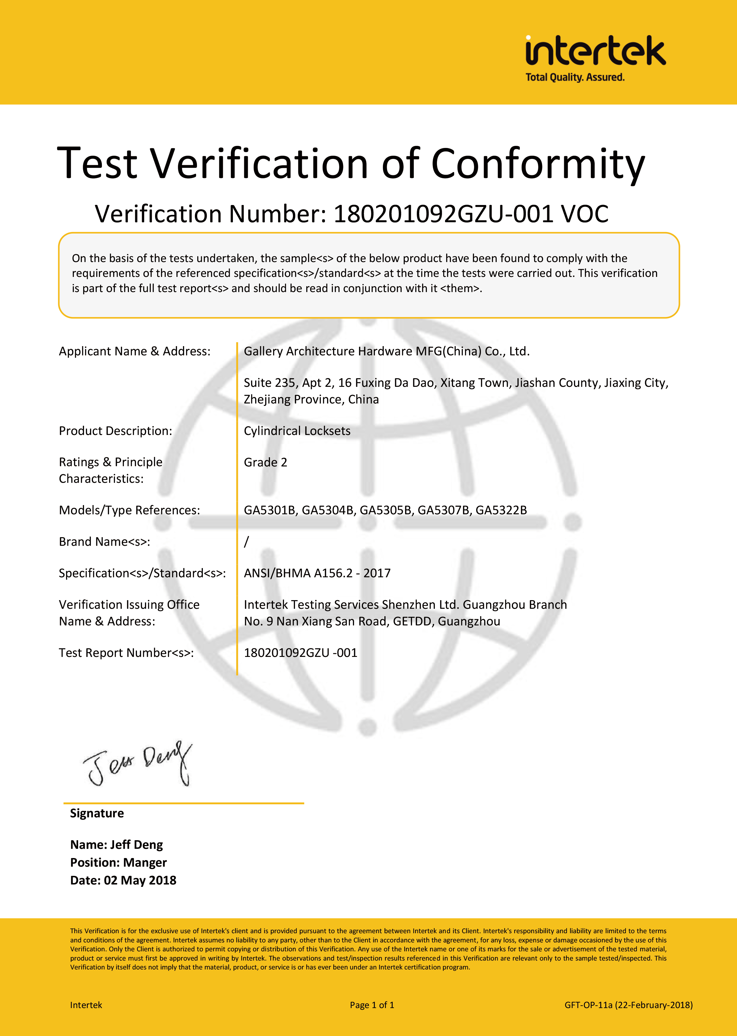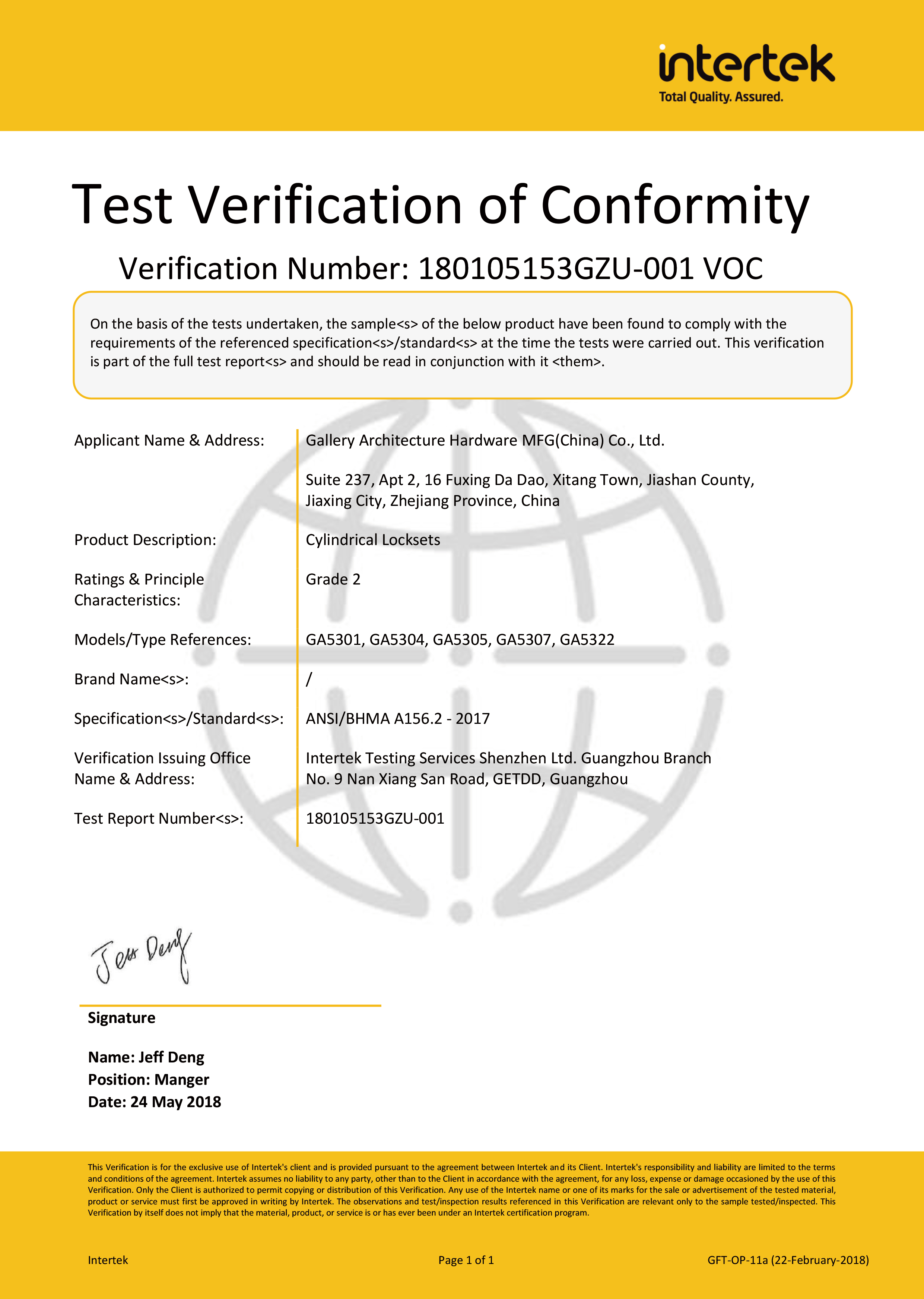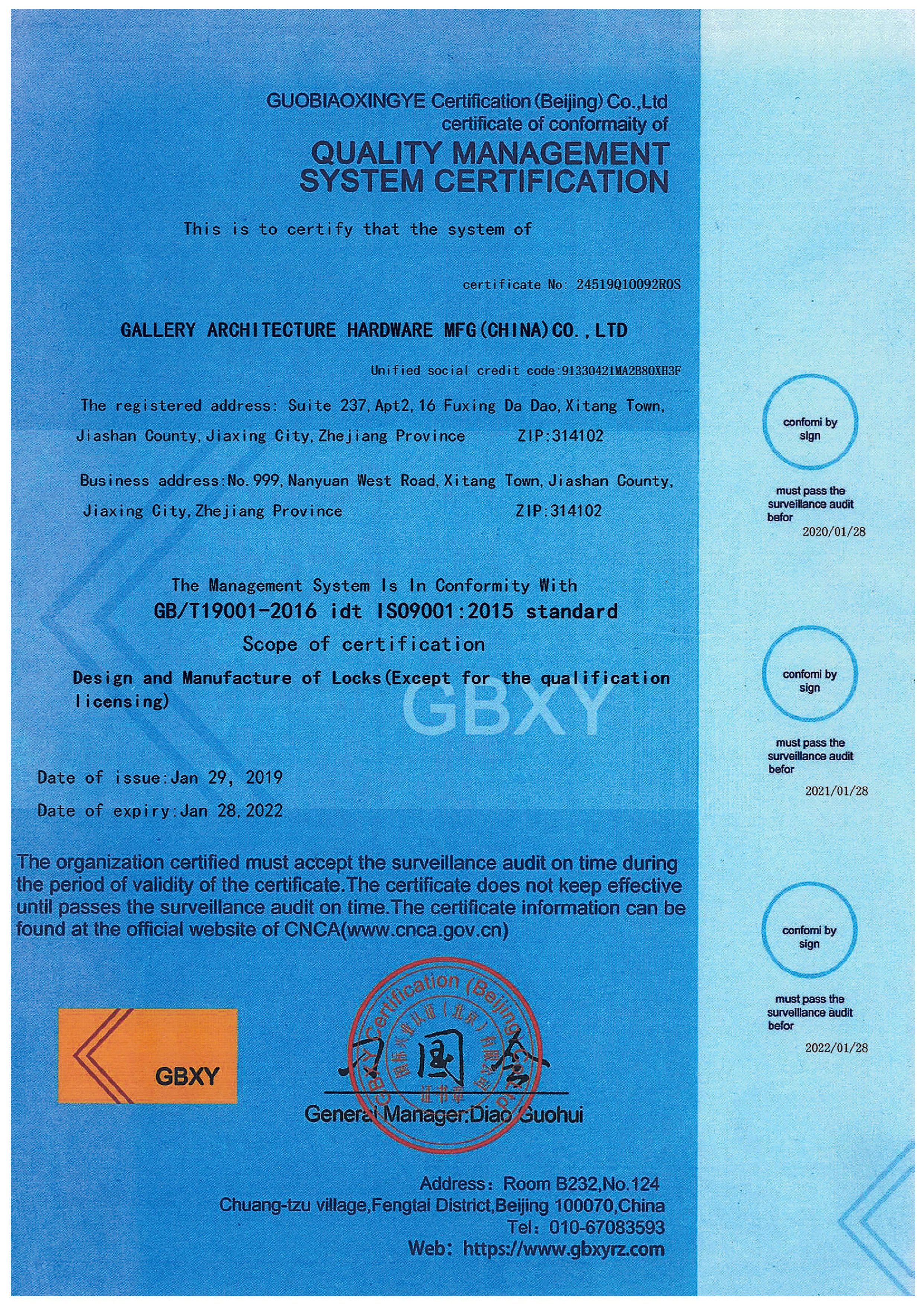 浙江堅(jiān)迪五金制造有限公司始建于 1995 年。自 2003 開始,公司致力于高標(biāo)準(zhǔn)商業(yè)鎖的研發(fā)工作,并于 2006 及 2007 年,8700 插芯鎖系列獲得美國國家標(biāo)準(zhǔn) ANSI A 156.13-2005 一級、ANSI A 156.2-2003 二級和美國 UL 10C3 小時(shí)防火測試認(rèn)證。自 1998 年以來,公司不斷提升產(chǎn)品和客戶服務(wù)品質(zhì),并獲得了 ISO 9001 的認(rèn)證。